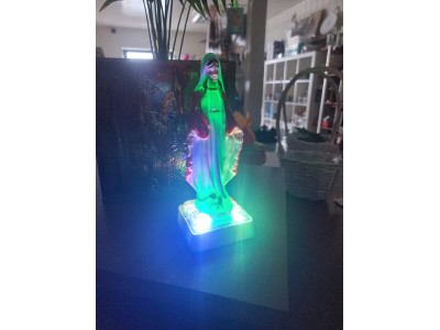 - Figurka przedstawiająca postać Matki Bożej z podświetleniem LED. Może być używana jako wkład do znicza lub samodzielna dekoracja nagrobna.